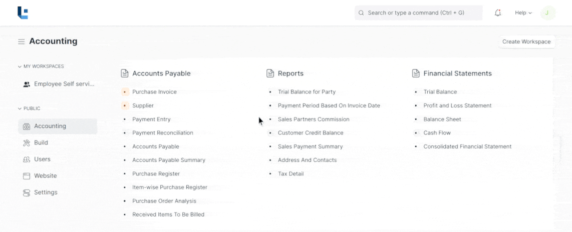 Once all the necessary details are filled, save the document. On saving, options to create the following will be seen in the Dashboard: